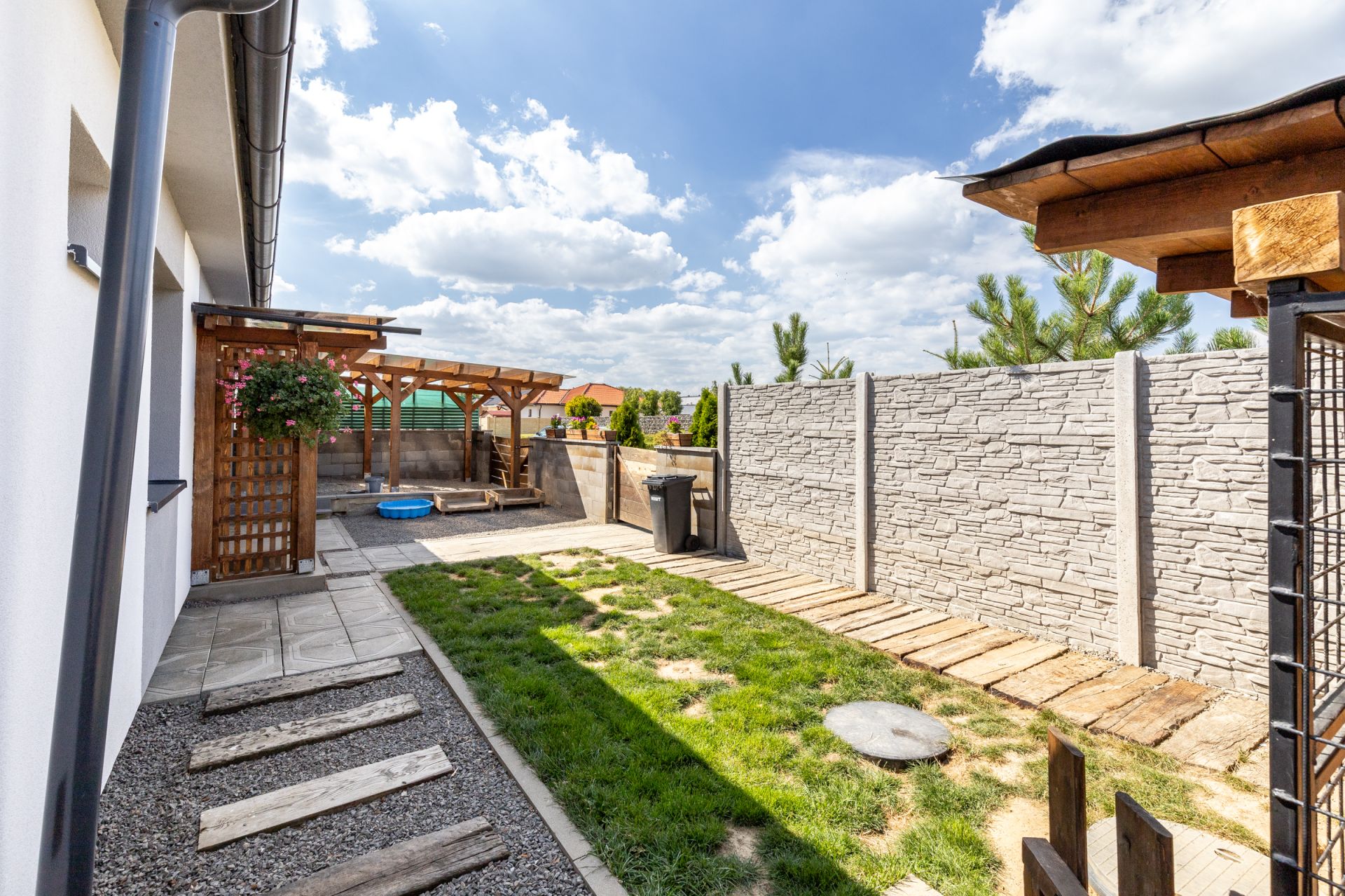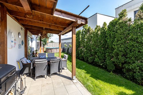 Bonusom domu je malá záhradka, ktorá ponúka priestor na posedenie pri grile a prípadne aj na inštaláciu bazéna. Tento dom poskytuje veľký pôžitok a minimum starostí, ideálny pre rodiny, ktoré hľadajú pohodlné a moderné bývanie.