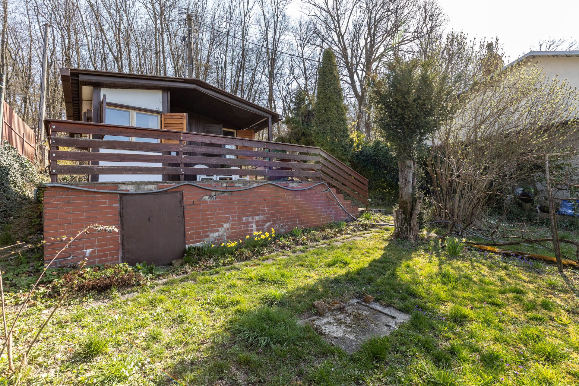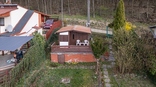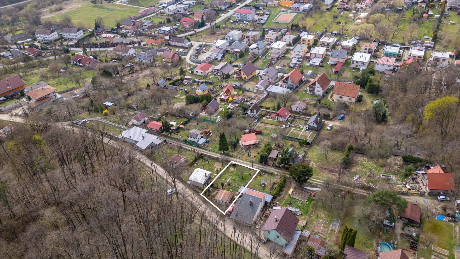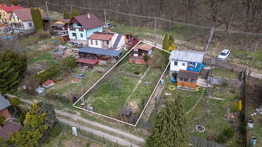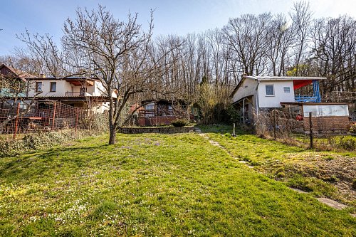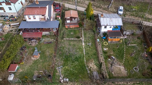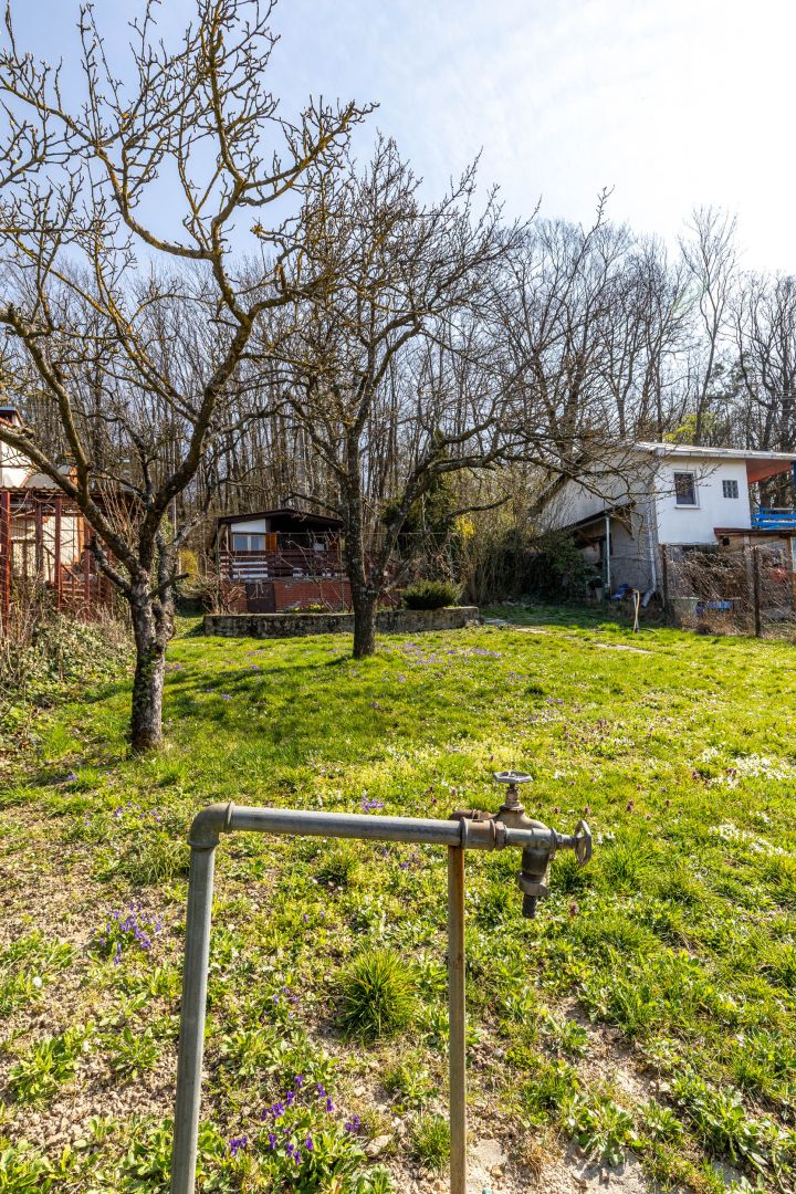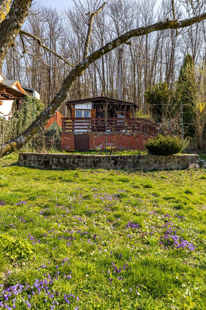 - Na pozemku stojí záhradná chatka so súpisným číslom 266 (14 m²), vhodná na víkendové prespávanie a malá pivnica.