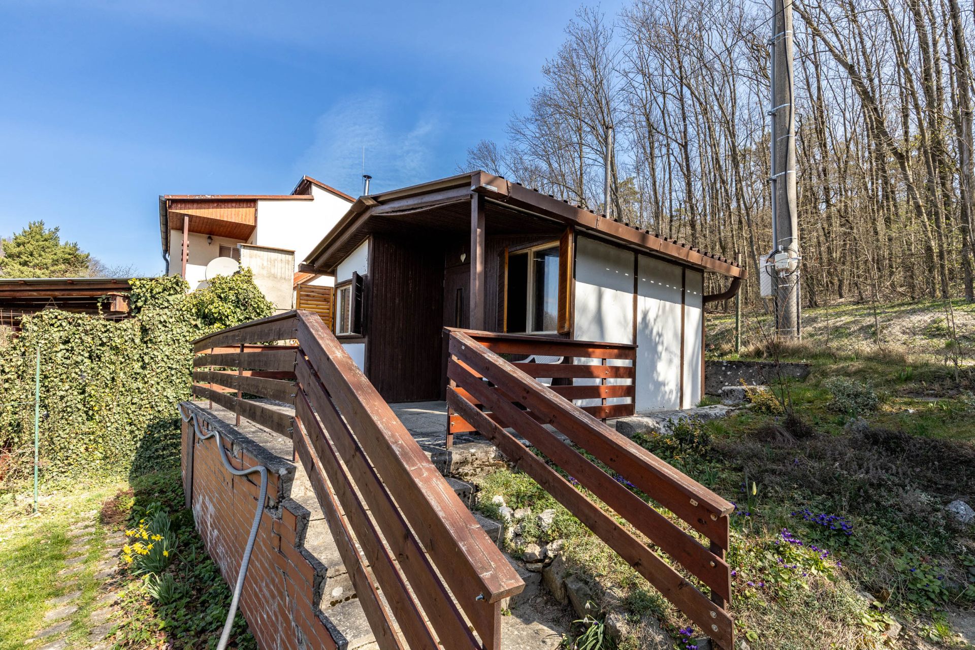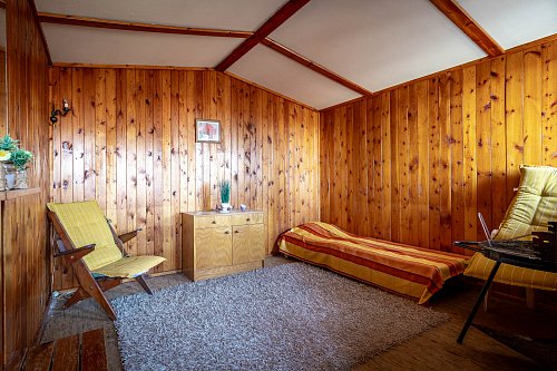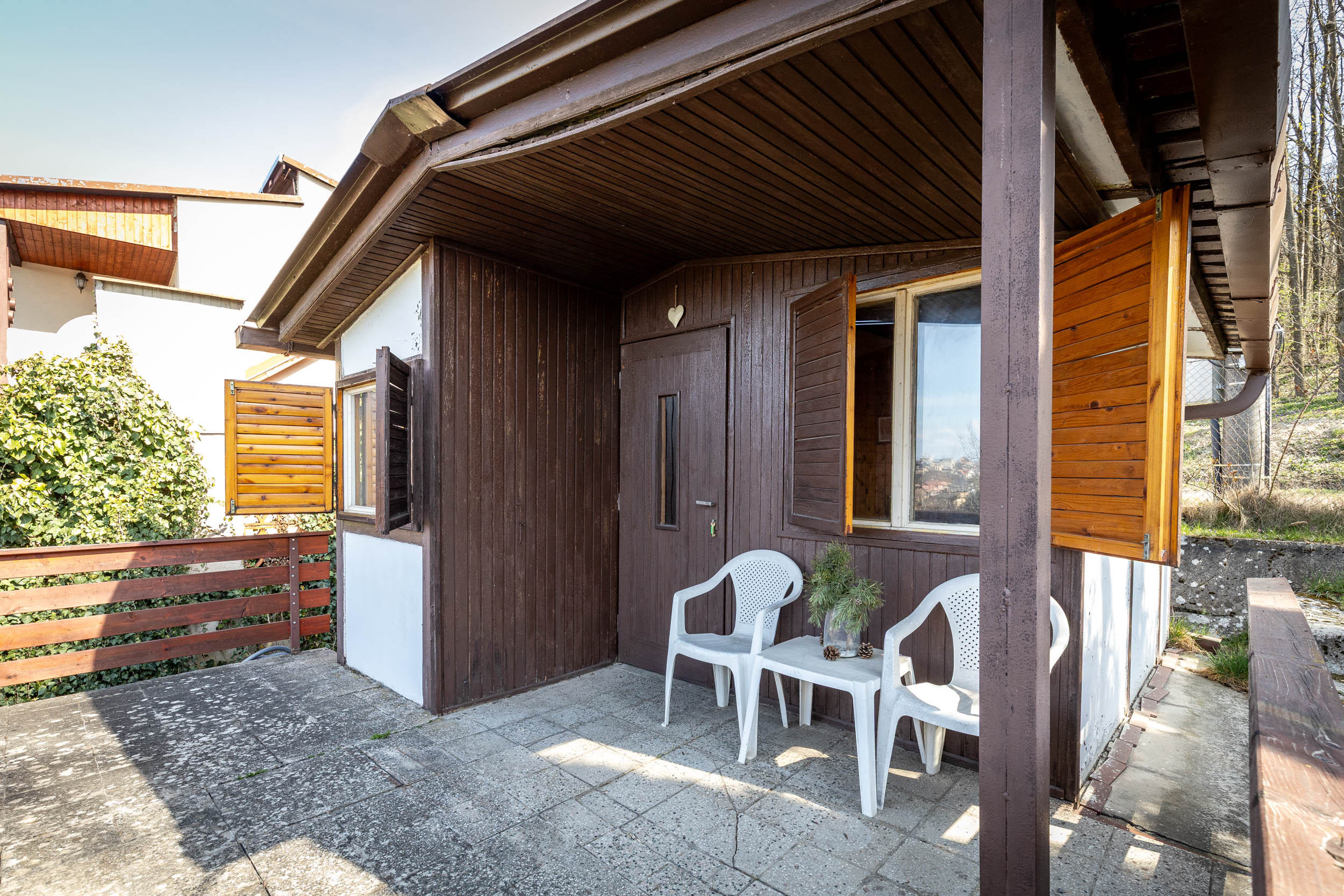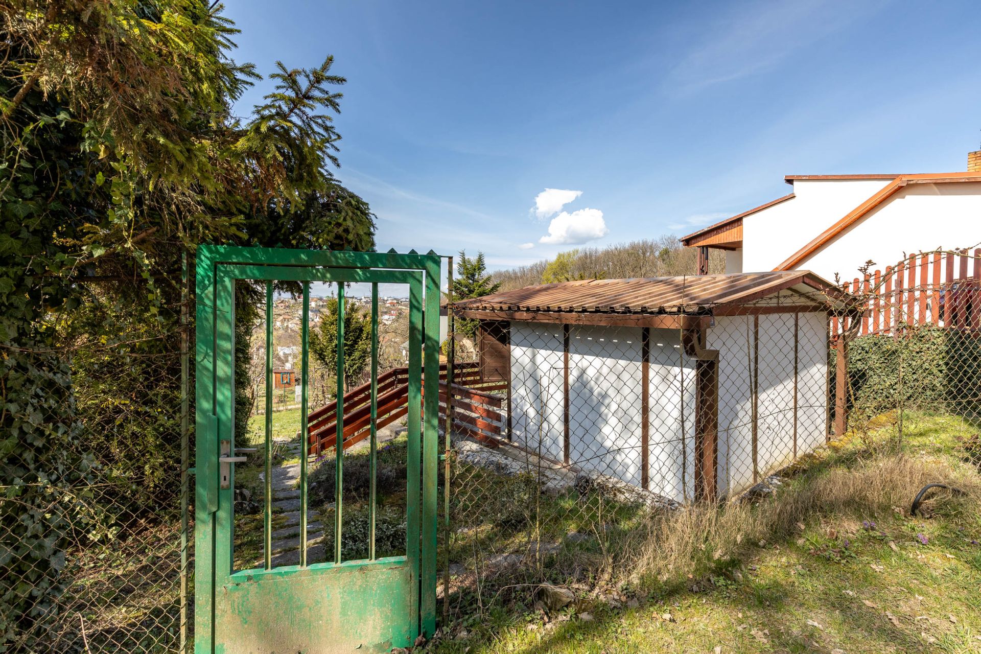 - Na pozemku stojí záhradná chatka so súpisným číslom 266 (14 m²), vhodná na víkendové prespávanie a malá pivnica.