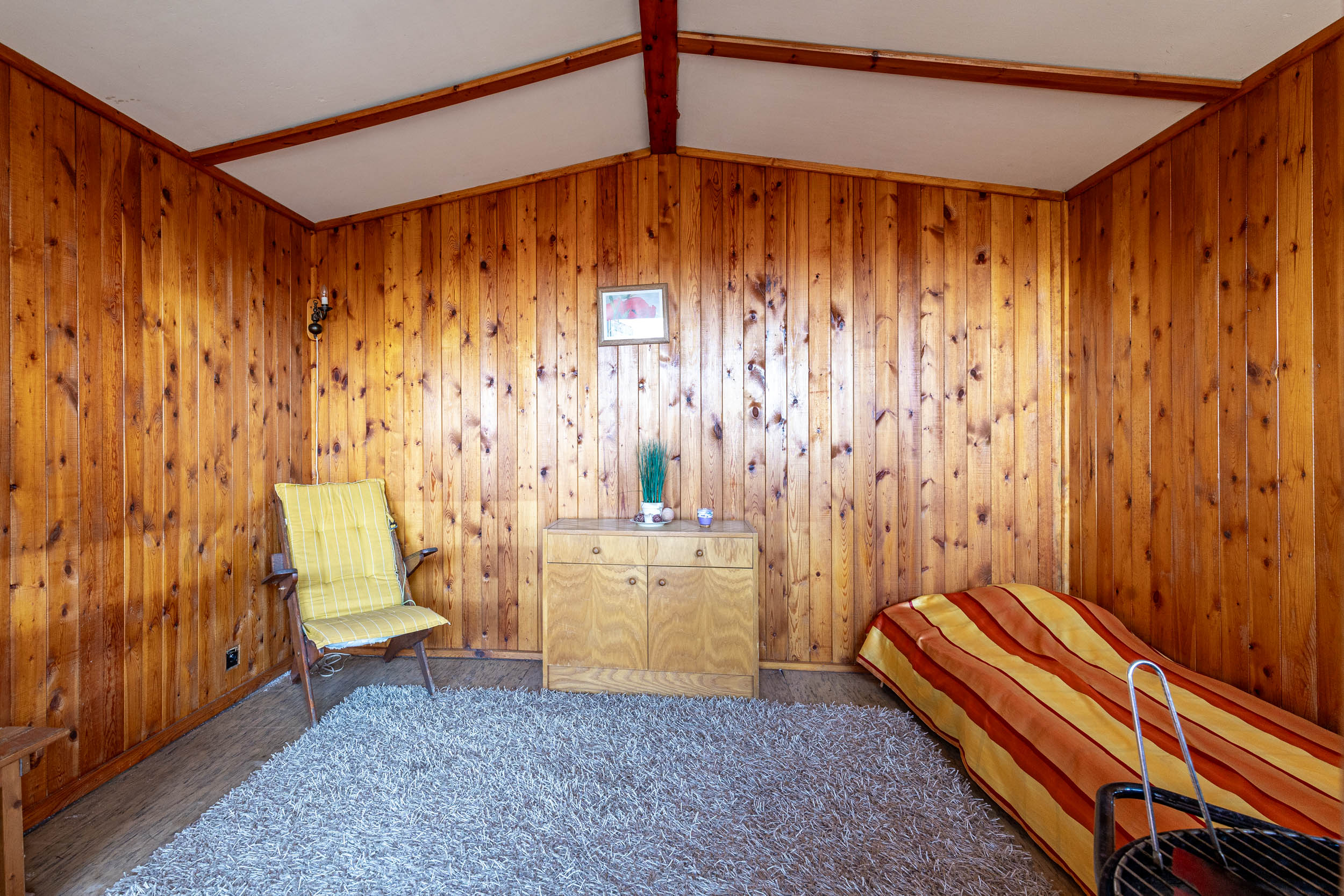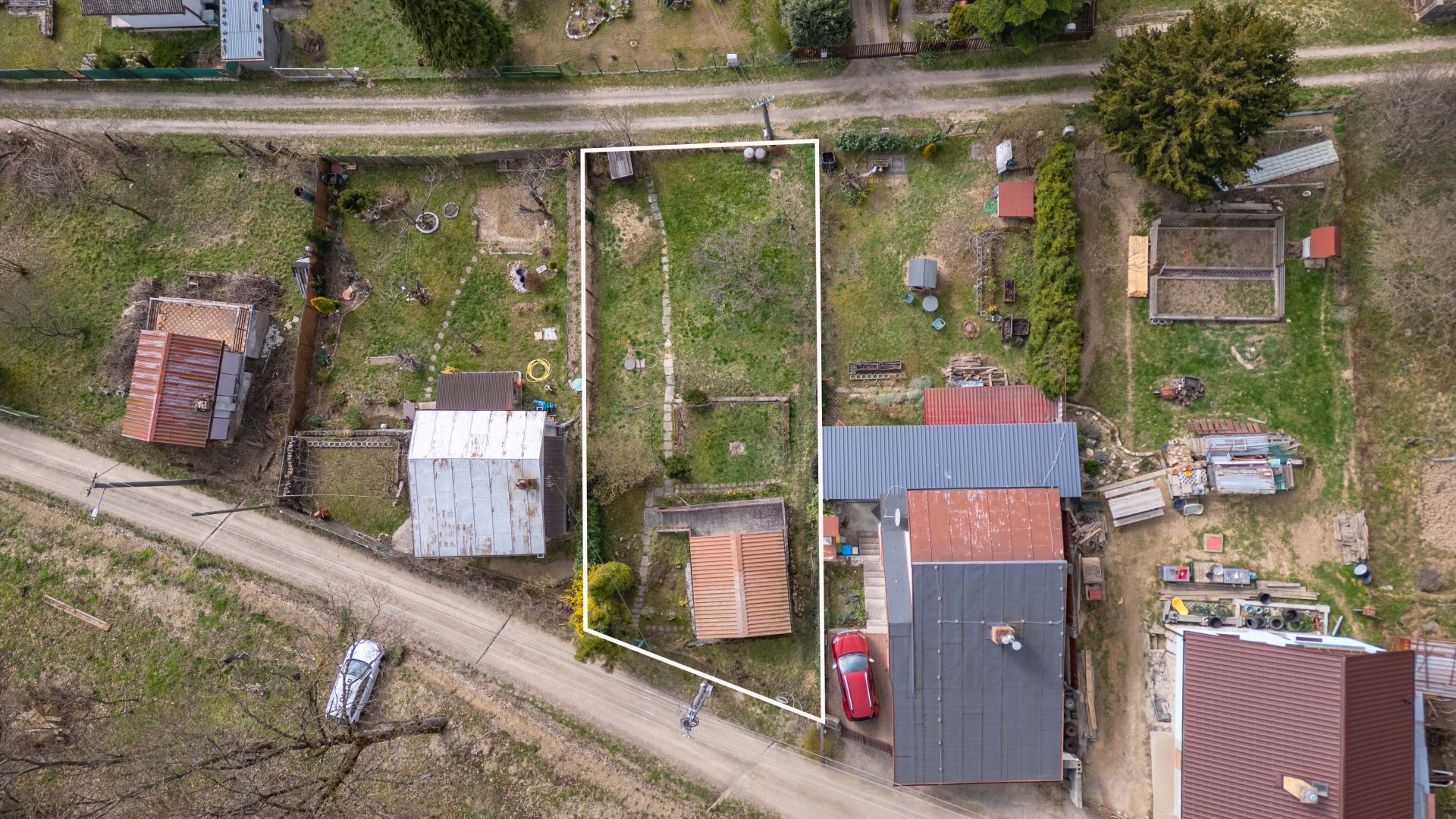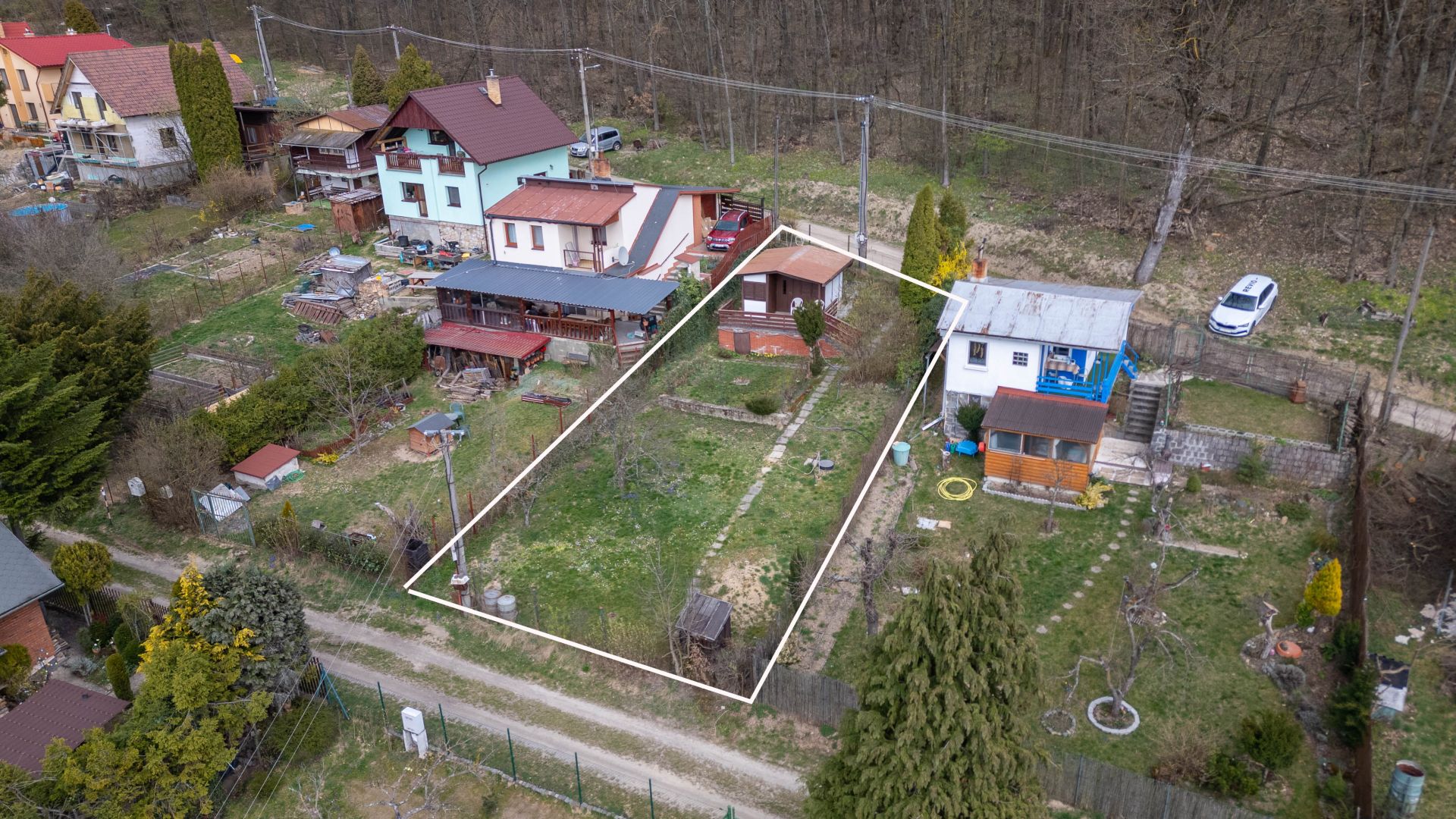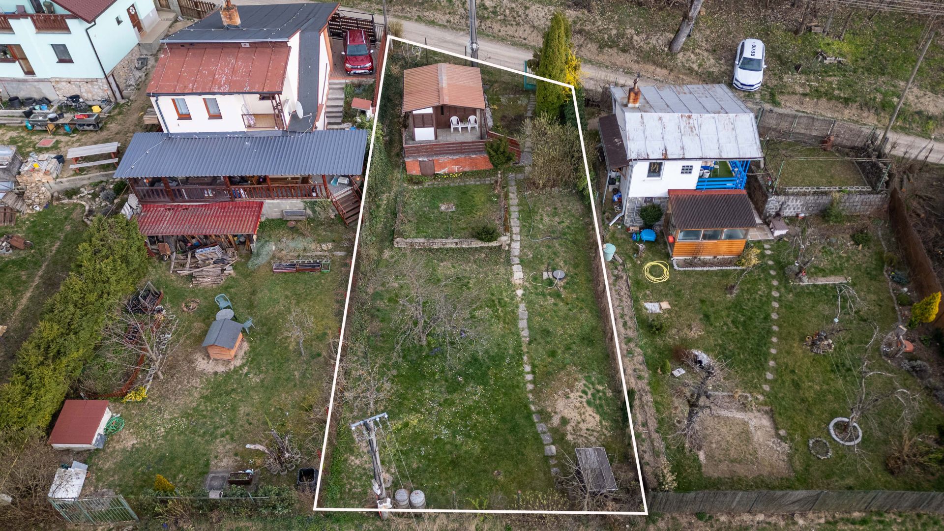 - Na pozemku stojí záhradná chatka so súpisným číslom 266 (14 m²), vhodná na víkendové prespávanie a malá pivnica.