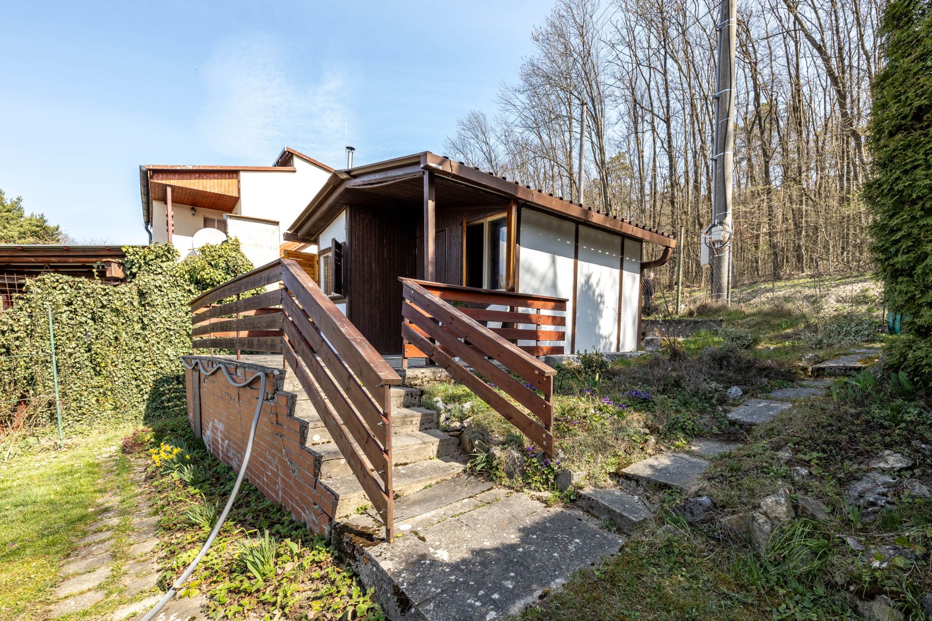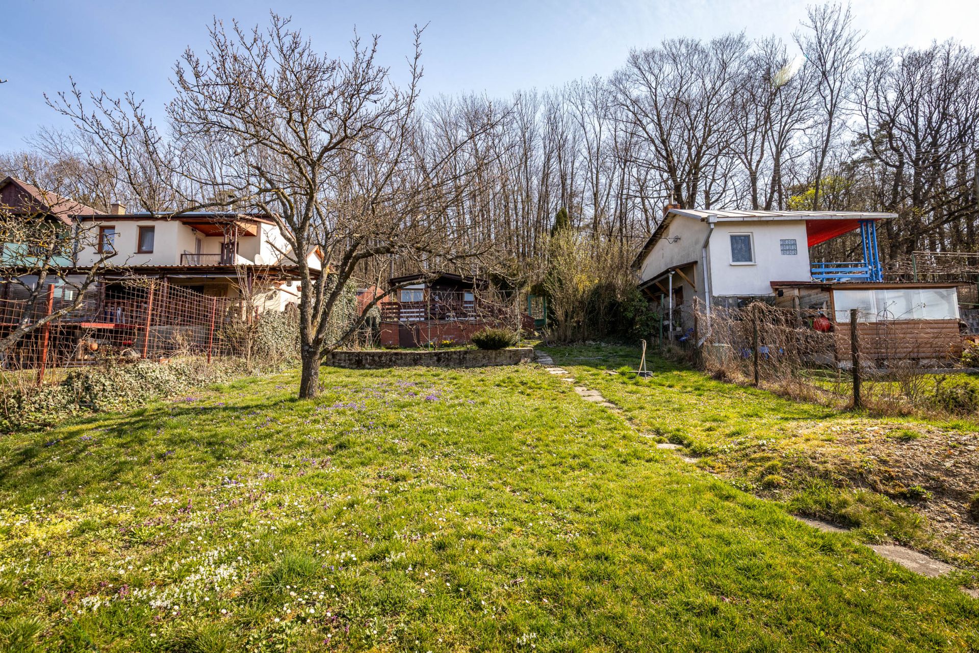 - Porasty: Na pozemku sú ovocné stromy (slivka, jabloň), hrozno, černice, maliny, ríbezle a jahody.